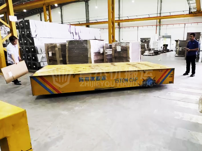 该无轨电动平车,载重15吨,是马来西亚某客户定制的产品;经过客户3个月的使用效果反馈,操作简单、行走灵活、搬运方便,大大节省了人力,提高了生产效率。目前,客户需要增产建设另一条生产线,需要再订购2台。