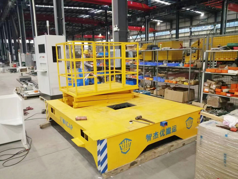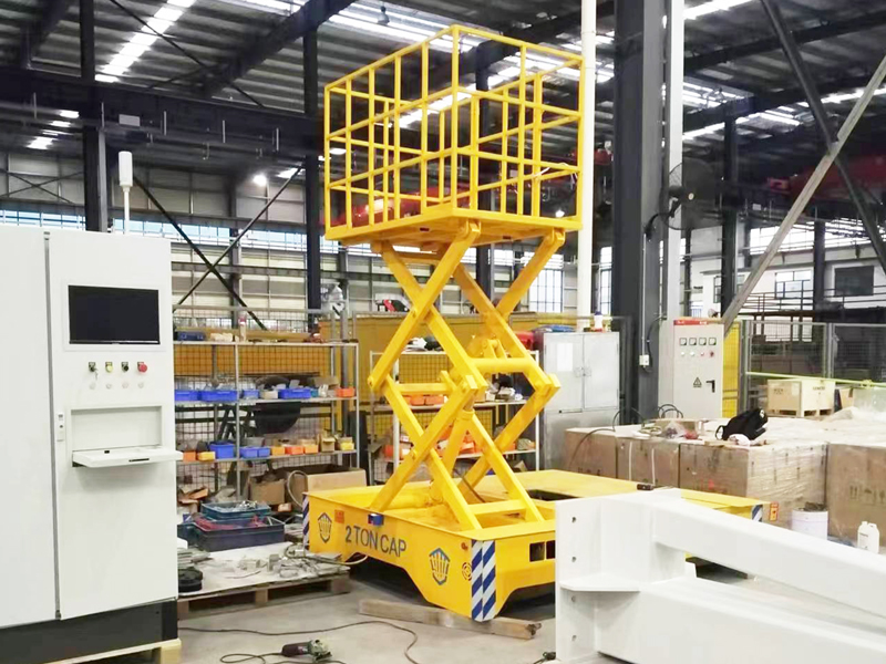 这是一台RGV轨道自动升降搬运车,整车长2.5米宽2.2米高0.5米载重2吨,平台局部定制液压升降台,升降行程2.5米,客户用于车间框架的举升转运工作。RGV小车采用拖电缆供电方式,满足24小时不间断作业,常用于短距离使用较频繁的车间过跨场景中,选用强度较高的锻打铸钢车轮结实耐用使用寿命长,小车电气自动化程度高,支持多种通信协议兼容性范围广可远程微机调度控制。同时也支持人工无线遥控RGV轨道车行走、升降!