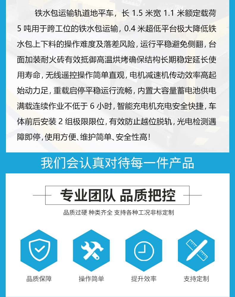 公司保障:电动平车、轨道平车的承重安全系数不低于60%