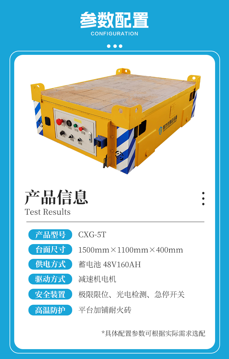 描   述: 在铸造车间高温熔融物料如何安全高效进行转运?这台耐高温轨道运输平板车为您提供解决方案。平台加铺耐火砖有效抵御高温烘烤,5吨额定载荷,可进行铁水包、钢水包、钢渣盆等重型物料轻松转运,蓄电池供电续航按需定制,操作简单维护方便,多重安全防护保障物料运输安全高效!