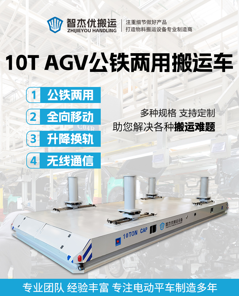 10吨级磁导航AGV公铁两用搬运车