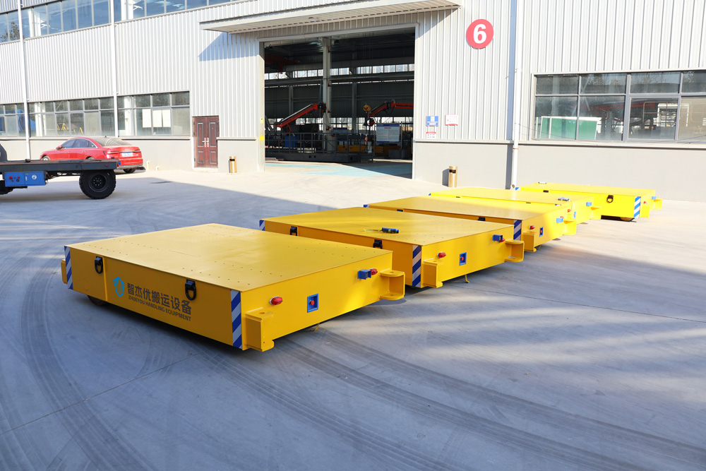 针对客户车间内外半成品转运的需求,本次交付的无轨车采用差异化的承载设计-10吨车型适用于重型设备工装转运,2吨车型则专注于中小型半成品及零部件的高效移动。车辆均采用箱梁结构车架,在保证强承载能力的同时,实现了结构的轻量化与持久耐用,满足高强度、连续作业的工业场景需求。