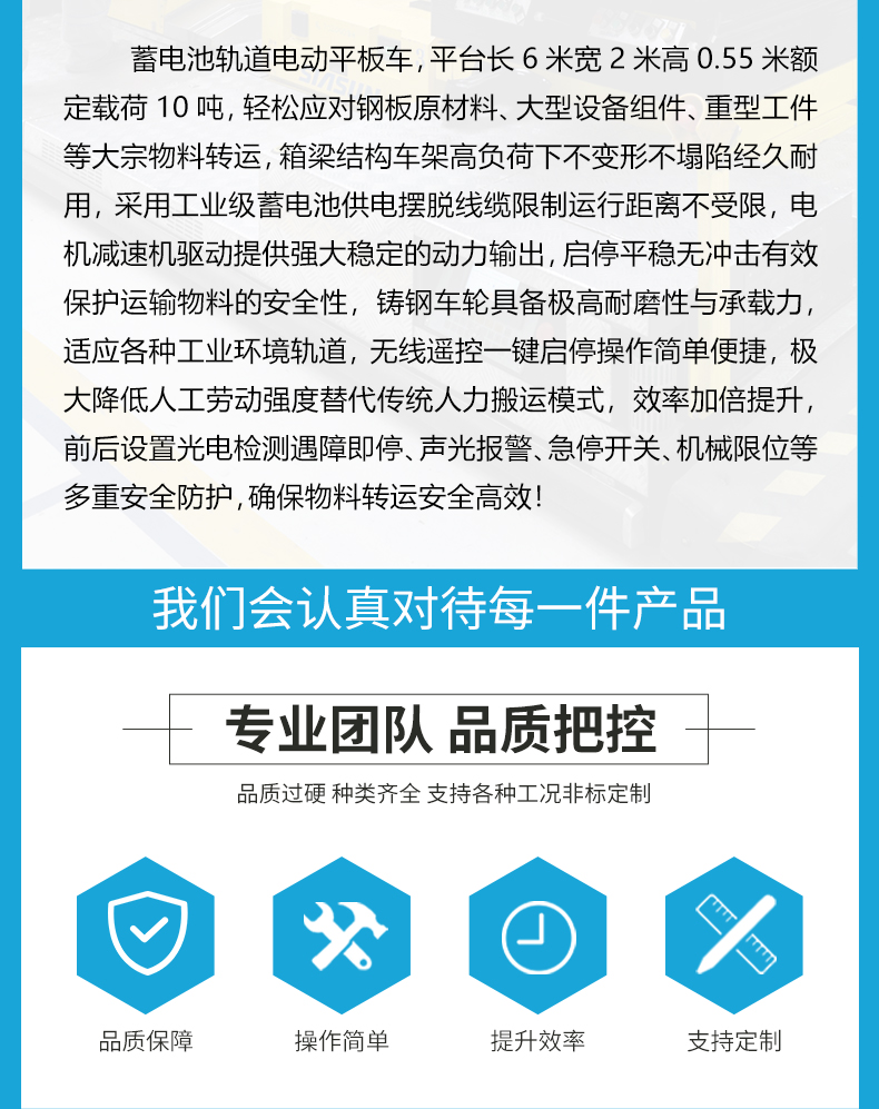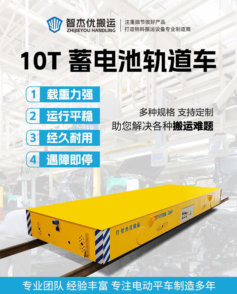 描   述: 车间内钢板原材料、大型设备组件、重型工件等大宗物料转运难?那你需要一台蓄电池轨道电动平板车来助力!集高承载、耐用度、安全性、便捷操作等性能于一身,车间效率转运提升70%!