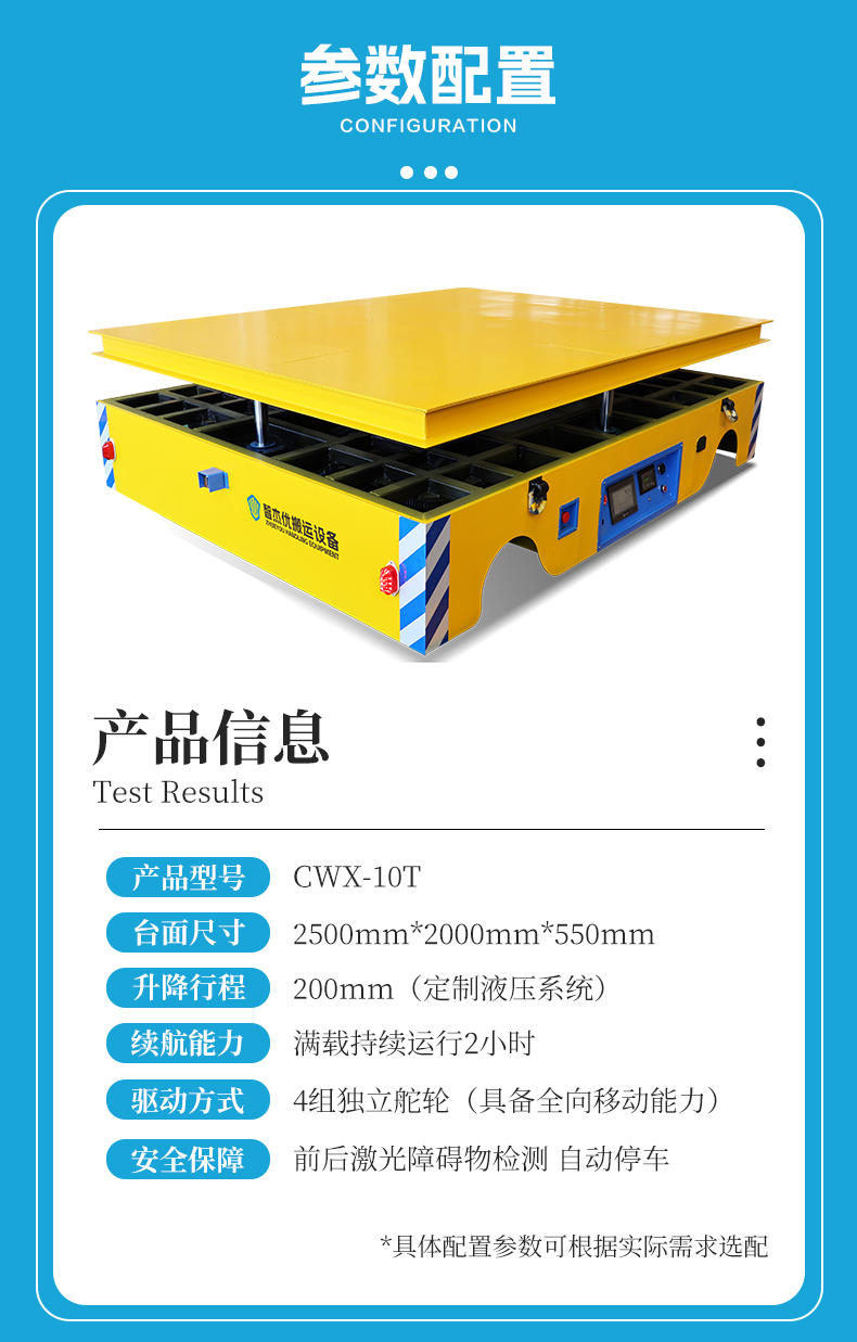 10吨液压升降全向无轨车